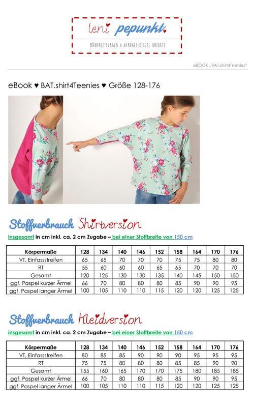 Die leni pepunkt. Teenie-Schnittmuster beinhalten die Einzelgrößen 128-176!
