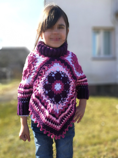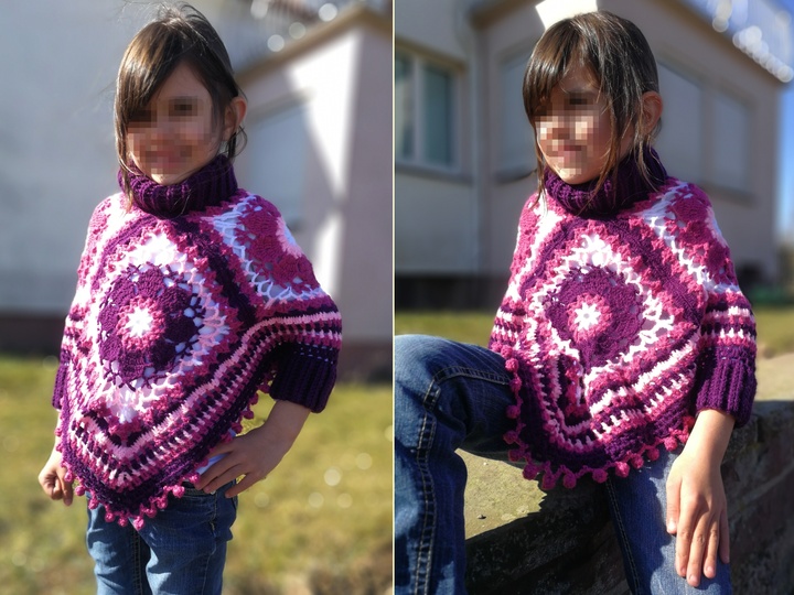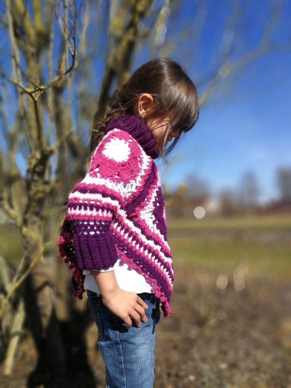 Dieser süße Poncho lässt sich mit Hilfe dieser Anleitung in verschiedenen Größen nacharbeiten.