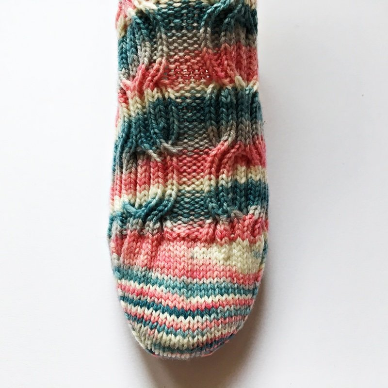 In der Anleitung werden Ferse und Spitze nicht erklärt, diese kannst du ganz nach deinen Vorlieben stricken. Sockenstrickkentnisse werden vorausgesetzt.