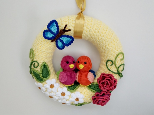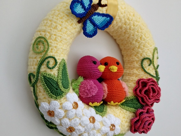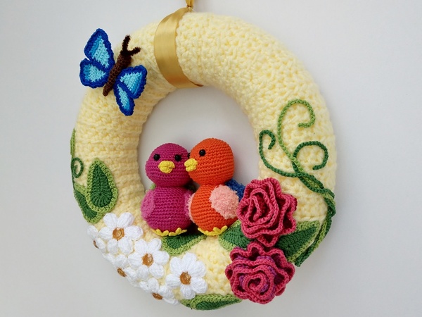 Je nach Geschmack kann der Kranz auch in anderen Farben gehäkelt werden.