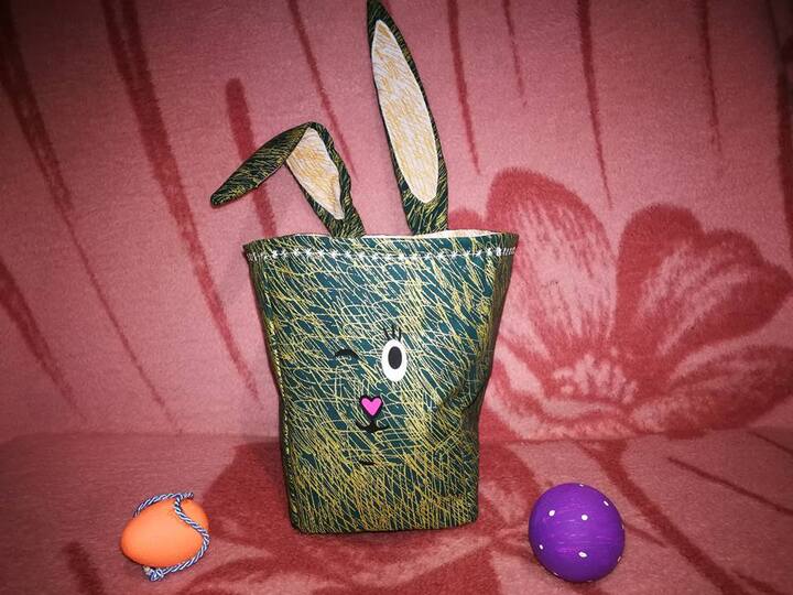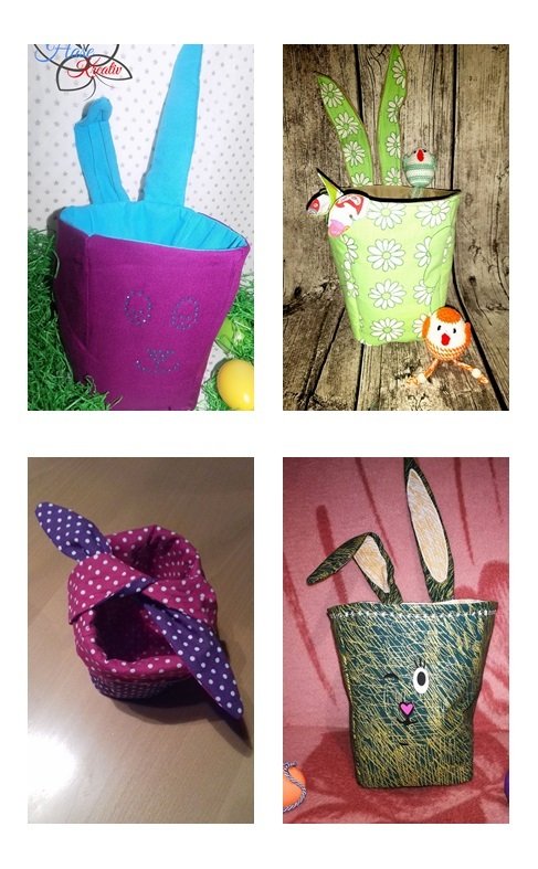 Sie ist in Form einer Popcorntüte konzipiert. Das war die Anfangsintention. Doch gemeinsam mit meinen tollen Probenähmädels haben wir für euch daraus noch ein Osterkörbchen -mit Ohren und Henkel und ein Utensilio mit Extrafach gezaubert. Doch nicht nur das!