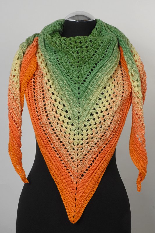 Ein schönes Anfängertaugliches Tuch. Die Reihen sind ausgeschrieben. Es ist keine Häkelschrift vorhanden. Das Muster ist sehr eingängig und eignet sich nicht nur als Tuch. Das Tuch kann mit jeder Garnstärke gehäkelt werden.