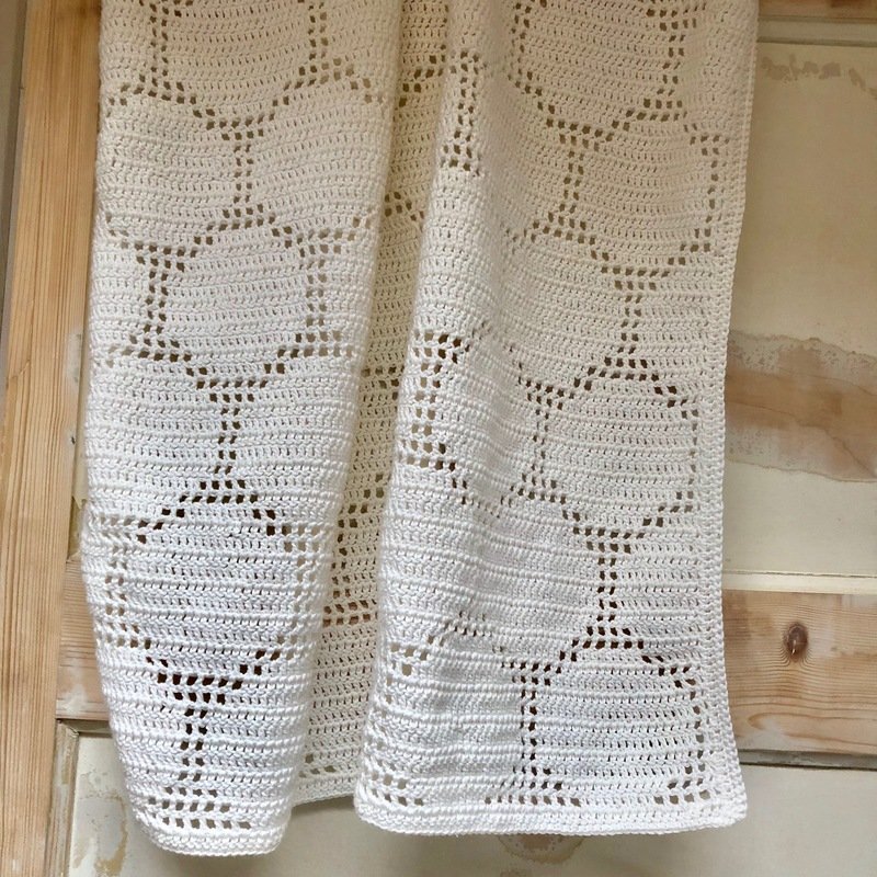 You will need approx. 1000 meter (or 1100 yards) of light cotton yarn suitable for hook 3mm (US D/3 or UK size 10). I explain how you can easily adjust the pattern for this blanket with other yarns, a different size hook or a different size blanket.