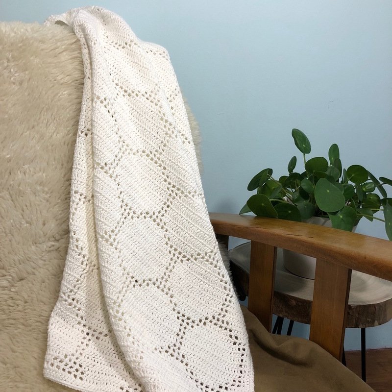 This blanket can be made in any size, from baby to adult with just a few adjustments, all clearly written in the pattern. This pattern is also very suitable when you are a beginner.