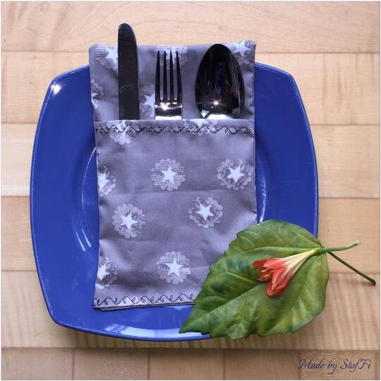 Hier erwerbt ihr KEINE fertige Bestecktasche sondern das Schnittmuster zum Ausdrucken aud DinA4 Papier und eine ausführliche, bebilderte Anleintung.