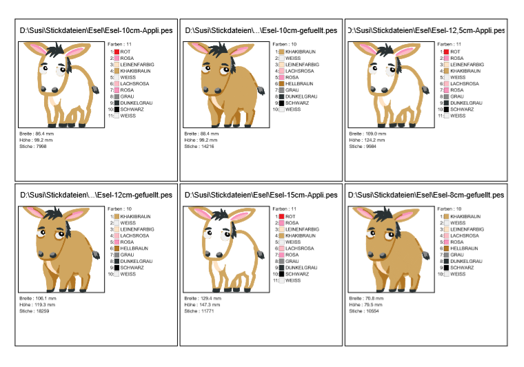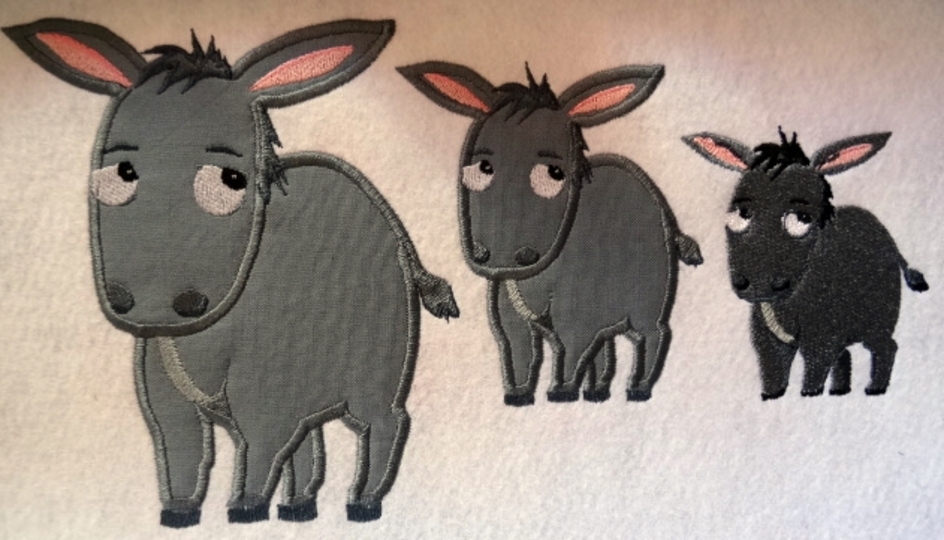 ♥ Stickdatei Esel in verschiedenen Größen, für Stoff Applikationen und gefüllt ♥