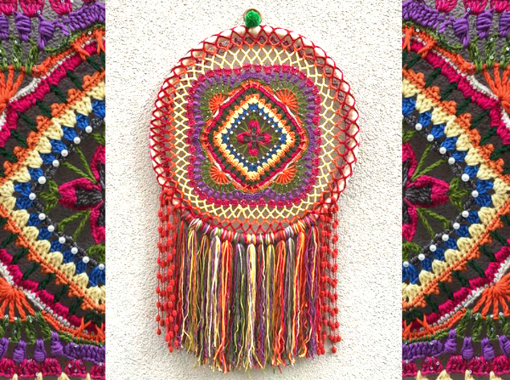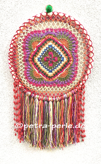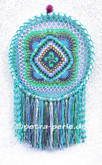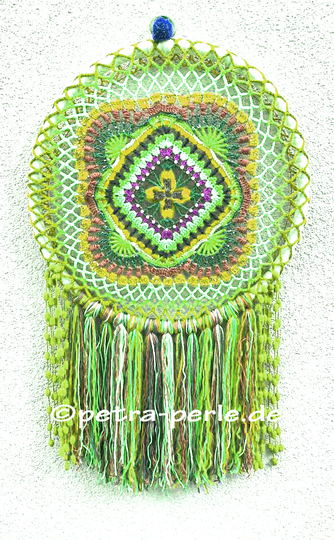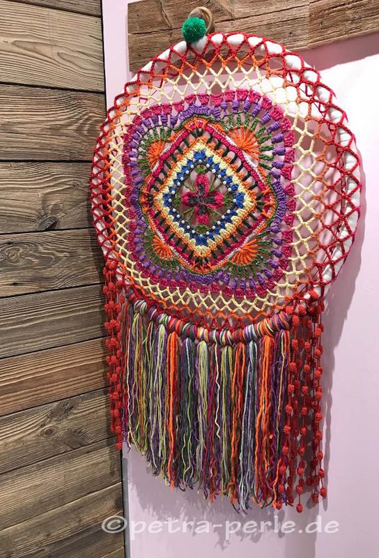 Der Traumfänger "Loverleaf" ist zum Nacharbeiten eine große Freude und er sieht als Wandschmuck oder als Gardinenersatz super aus...