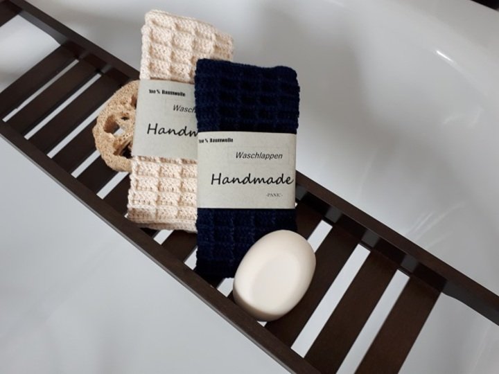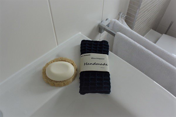 Sogar im Bad sind meine Lappen im täglichem Gebrauch. Ich verwende sie als Waschlappen oder auch um das Bad zu reinigen. Damit ich nicht durcheinader kommen, habe ich für jeden Bereich ein anderes Muster, daran erkenne ich für welchen Bereich ich die Lappen verwende.