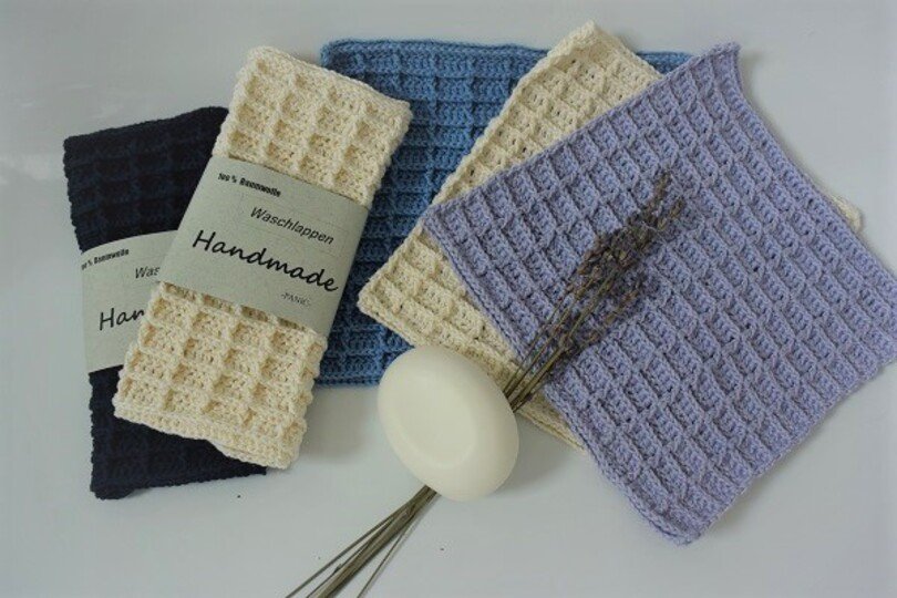 Baumwolle haben eine hohe Saugkraft diese kann bis zu 8o% seines Eigengewichts an Feuchtigkeit aufnehmen. Durch mein Stricktur-Muster eignen sich diese Lappen besonders gut für alle Vertiefungen, wie Fugen und andere Unebenheiten.