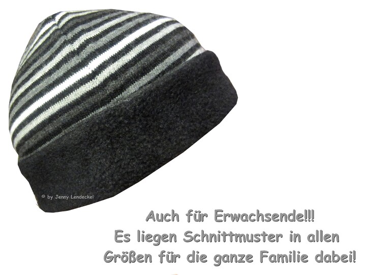Es sind Schnittmuster für den Kopfumfang von 44cm-59cm enthalten. Passt also vom Kleinkind bis hin zum Erwachsenem :)