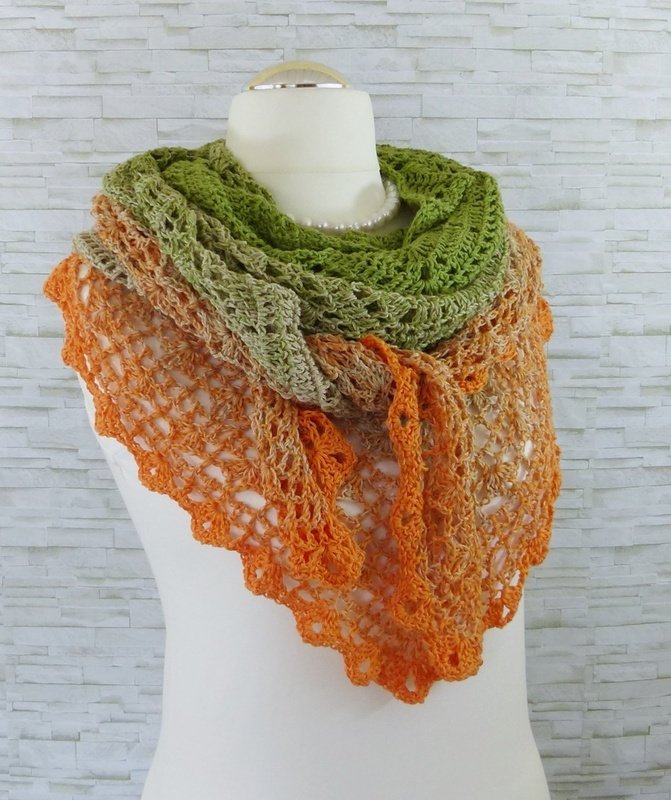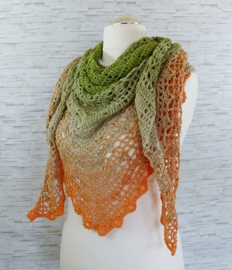"Anisa" ist ein luftig, leichtes sommerliches Häkeltuch / Stola. Das Muster ist relativ leicht zu häkeln, ist schön luftig und daher ideal für den Sommer. Das Dreiechstuch kann natürlich auch mit dickerer Wolle gehäkelt werden. Dann ist es für den Übergang/Winter.