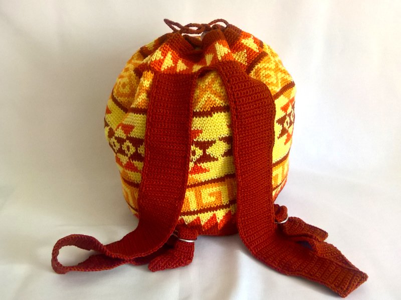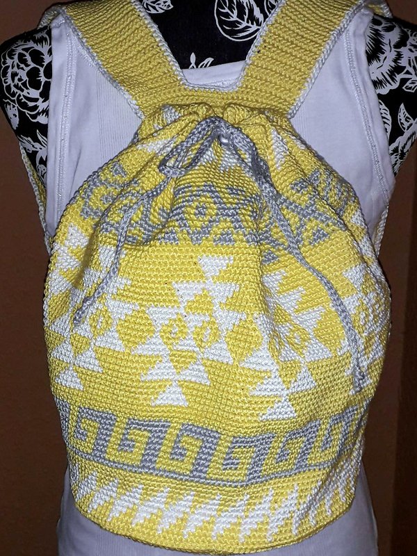 Der Rucksack ist ca. 27cm hoch und 23 cm im Durchmesser.
