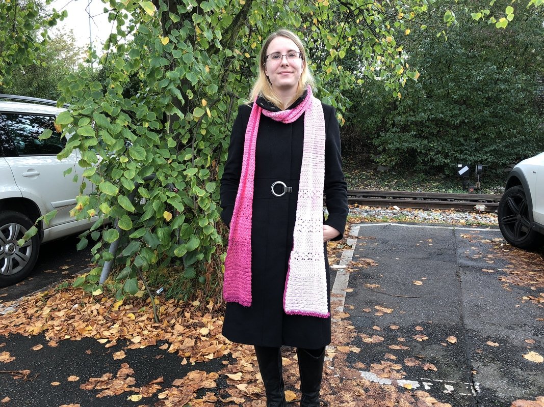 Hier ist meine Anleitung Amelia. Amelia ist ein offener XXL Häkelschal, der aus einem Bobbel gefertigt wird. Mit diesem Schal in fröhlicher Farbgebung starten wir in den Frühling. Besonders gut kommt er auf einem schwarzen Mantel zur Geltung.
