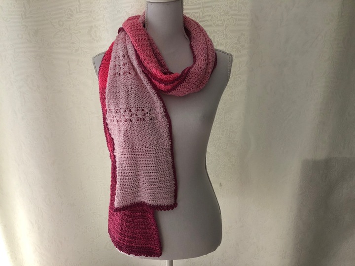 Wird der Schal genau nach Anleitung gearbeitet, so ist er wenn er fertig ist ca. 22 cm breit und 2,50 m lang.