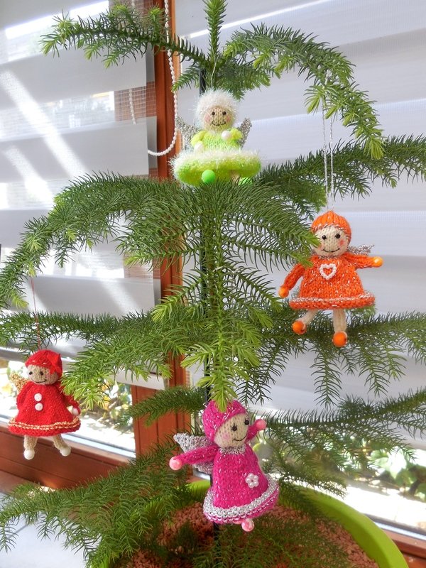 Die süßen Engelchen eignen sich hervorragend zum Verwerten von Wollresten. Die abgebildeten Engel sind allesamt aus Strumpfwollresten gestrickt und haben eine Größe von ca. 9 cm.