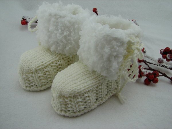 Der Verkauf, der gefertigten Babystiefel, Mützen und Handschuhe ist möglich