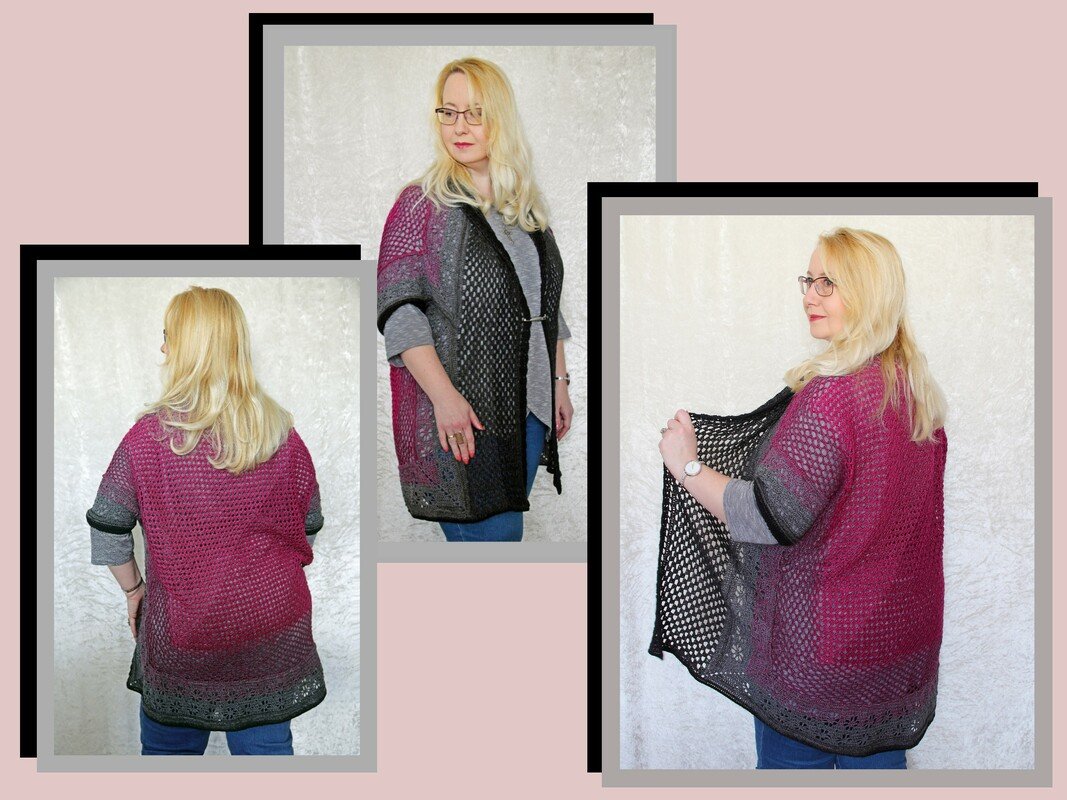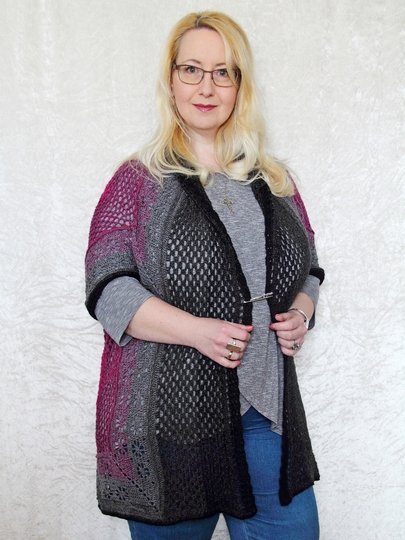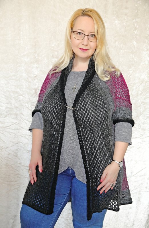 Er kann individuell für jede Konfektionsgröße nachgearbeitet werden, man benötigt keine vorgegebenen Maße, sondern nur den eigenen Körper. Der Seelenwärmer schmeichelt jeder Figur, von S bis XXL!