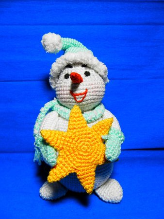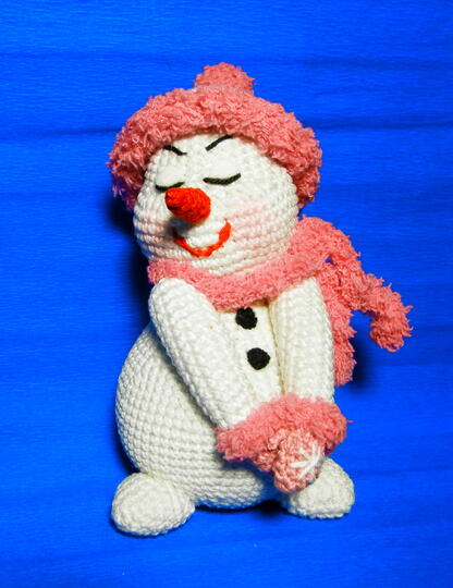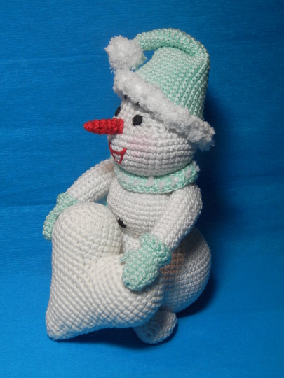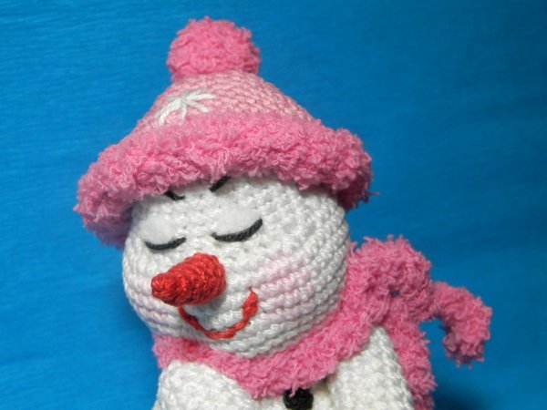 Der Schneemann ist als fertiges Produkt ca. 18 cm seine kleine Gefährtin ca. 16 cm hoch. Das variiert natürlich je nach verwendeter Wollstärke sowie nach der Stärke der Häkelnadel.