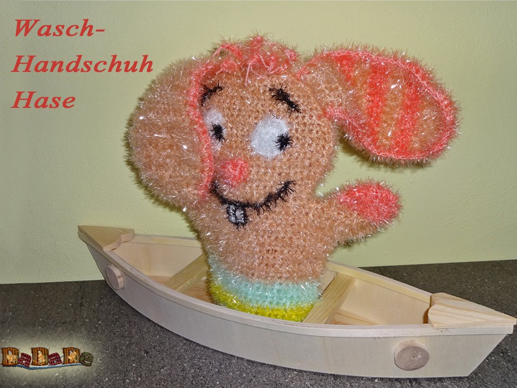Der Waschhandschuh Hase wird ungefähr; 21cm hoch x 22cm breit, ohne Ohren