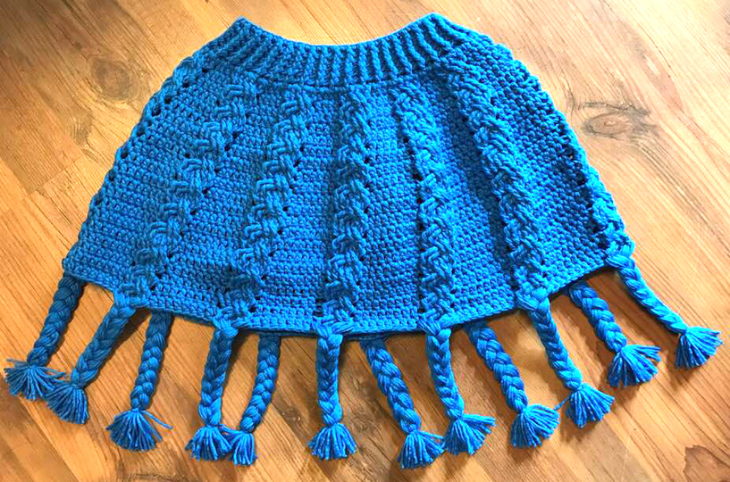 Der Poncho „GRETEL“ mit seinen vielen Zöpfen ist eine schöne Handarbeit und eine Bereicherung für Deinen Kleiderschrank....er passt gut zu romantischer Kleidung, aber auch zur Tracht..natürlich kann man ihn auch länger machen, dann brauchst Du aber mehr Wolle