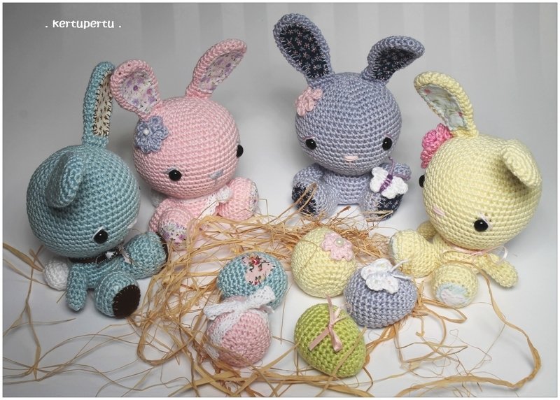 Die Häkelanleitung für die auf einem Foto sitzenden Osterhäschen findest Du auch in meinem Lädchen!