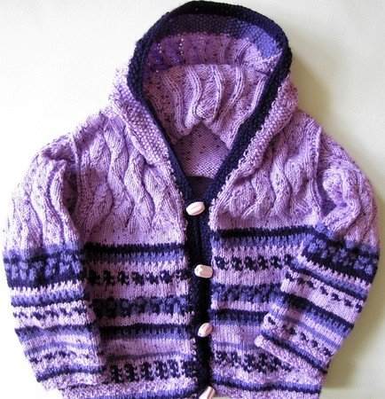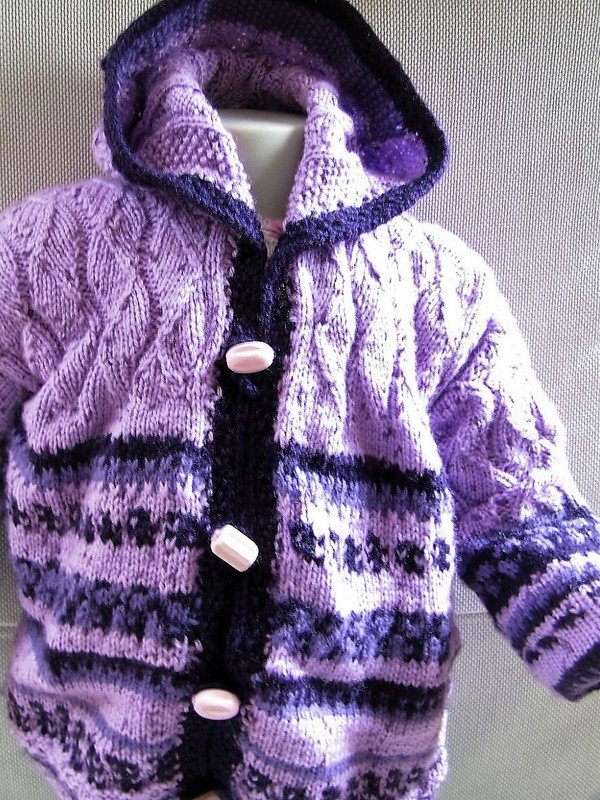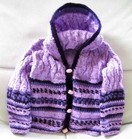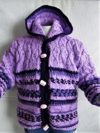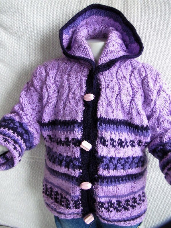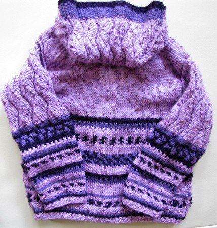 Die Kapuze sowie die Arme werden direkt angestrickt damit keine lästige Naht entsteht.