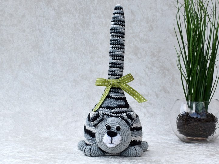 Der Schwanz der Katze ist so gearbeitet, dass man den Türstopper schnell greifen und bei Bedarf umsetzen kann.