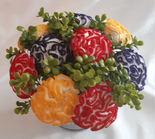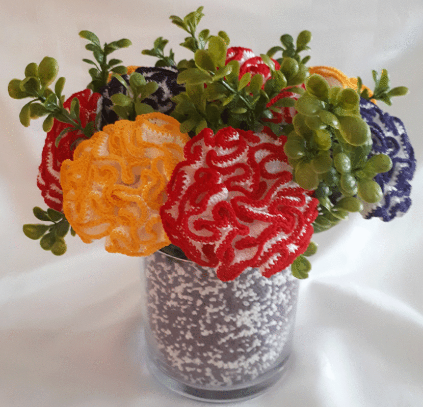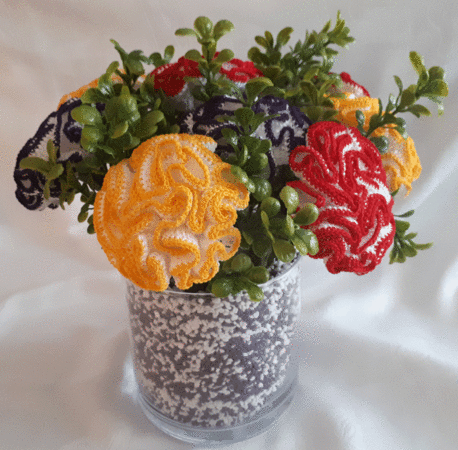 Dieses Modell besteht aus einer bebilderten und genau beschriebenen Pdf-Anleitung (13 Seiten) zum Häkeln des Gestecks.