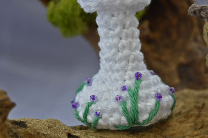 Der Schwammerl wird von der Kappe bis zur Knolle in einem Stück gehäkelt, du brauchst also nichts zusammennähen :-)