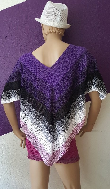 Dieses tolle Set lässt euch garantiert zum Blickfang werden, tragbar im Sommer aber auch gut kombinierbar im Herbst mit Leggings und tollen Stiefeln. Der Ponch-Pulli sowie der Rock sind aus einem Bobbel entstanden, Lauflänge 1500 m mit Nadel 4.