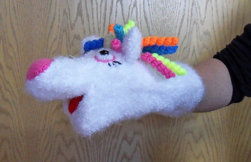 Hallo ich bin Susi das Einhorn, mit mir kannst Du viel Spaß haben. Ich bin eine Klappmaul Handpuppe, also ich kann meinen Mund bewegen und lustige Grimassen schneiden. Wenn mein Freund etwas Geschick hat! Ich bin im Wollwaschgang waschbar. Mein Freundin hat sich sehr viel mühe gegeben damit du mit der Anleitung gut zurecht kommst. Wenn du einiges über das Stricken weist bin ich leicht nach zu stricken. Ich bin ca. 24 cm groß. Meine PDF Anleitung hat 6 Seiten.Viel Spaß!