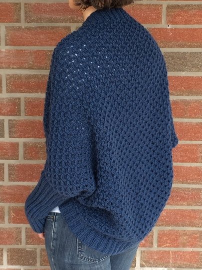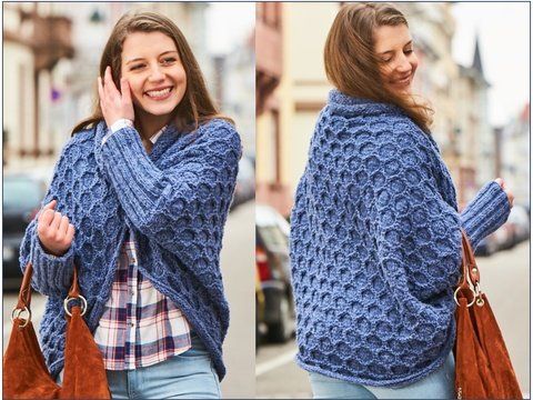 Der Ärmelschal entsteht ganz easy aus einem Rechteck, mit auffallendem Lochmuster, an das die Ärmel angestrickt werden.