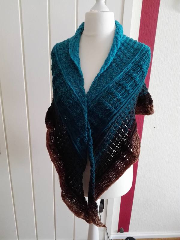 Besonders hervorheben möchte ich die Kombination aus gehäkeltem Zopfmuster und einem Broomstick Teil. Für den Broomstick ist zusätzlich noch ein Link zu einem Video angegeben.