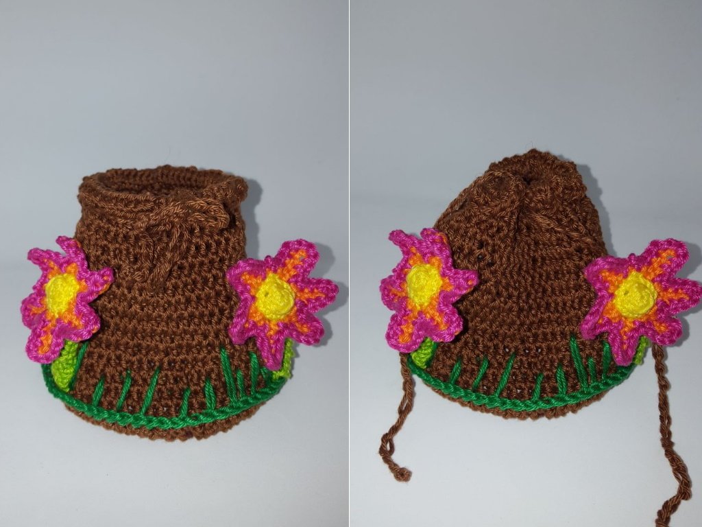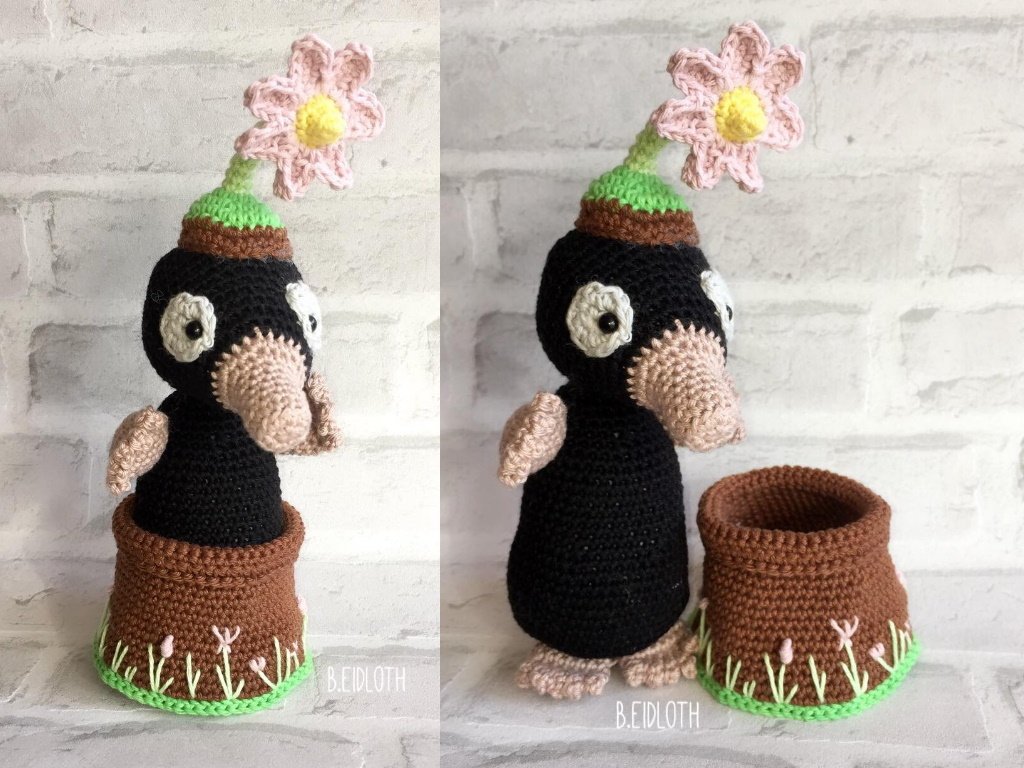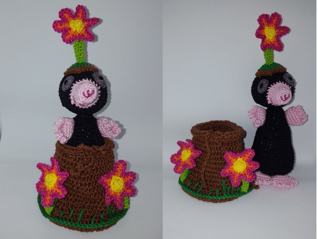 Guckt wer aus dem Hügel schaut um zu sehen ob der Frühling den schon da ist. Klein Melly bringt ihren Hügel gleich mit, dieser lässt sich auch wunderbar als Säckchen benutzen. Ein paar Blümchen blühen auch schon. Ich glaube der Fürhling ist da.