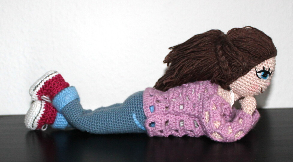Klara kommt natürlich zusammen mit der Anleitung für die Klamotten, die sie anhat.