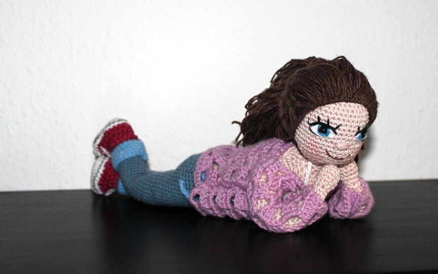 Die fertig gekälte Puppe kann gerne weiterverkauft werden, sofern ein Hinweis: " Gehäkelt nach einer Masche-fuer-masche!" mit einem passenden Link beigelegt wird.