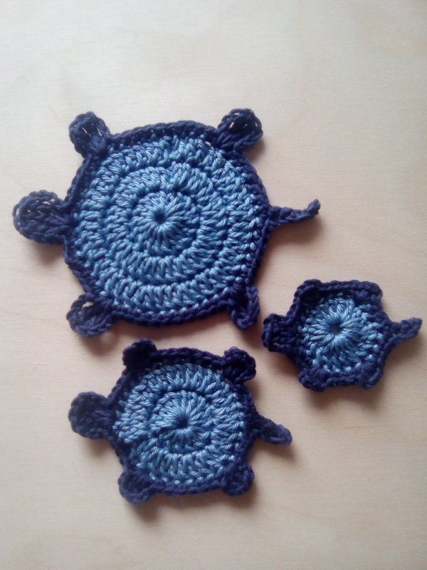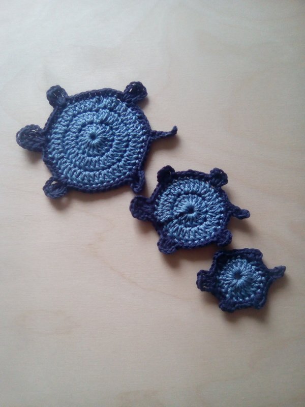 Schildkrötenfamilie sucht ein neues Zuhause! Die niedlichen Schildkröten sind ein ideales Mitbringsel bzw. Gastgeschenk. Sie eignen sich als Spielzeug, Tischdeko oder Untersetzer. Oder verzieren T-Shirts, Jeans und Taschen. Ganz, wie es beliebt.