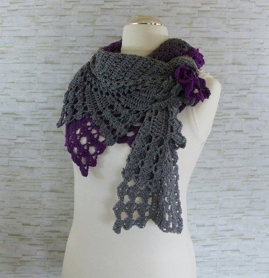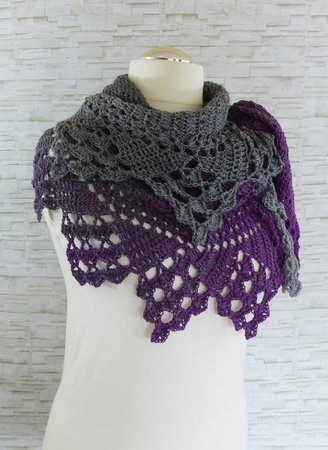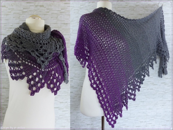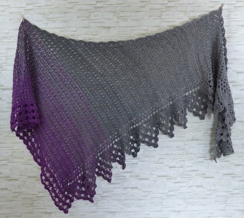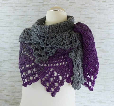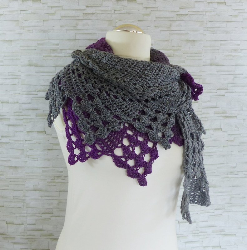 Das Tuch ist asymmetrisch und wird von der Seite her gehäkelt.