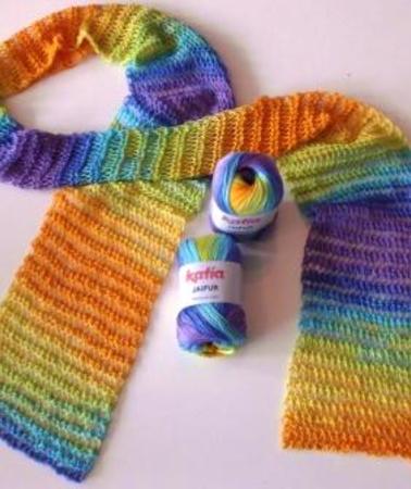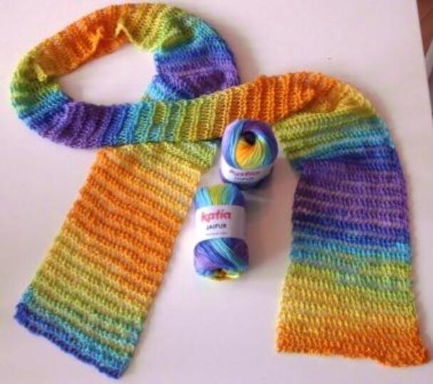 Ausgesprochen filigran wirkt der leichte Sommerschal aus dem Farbverlaufsgarn Jaipur von Katia.
