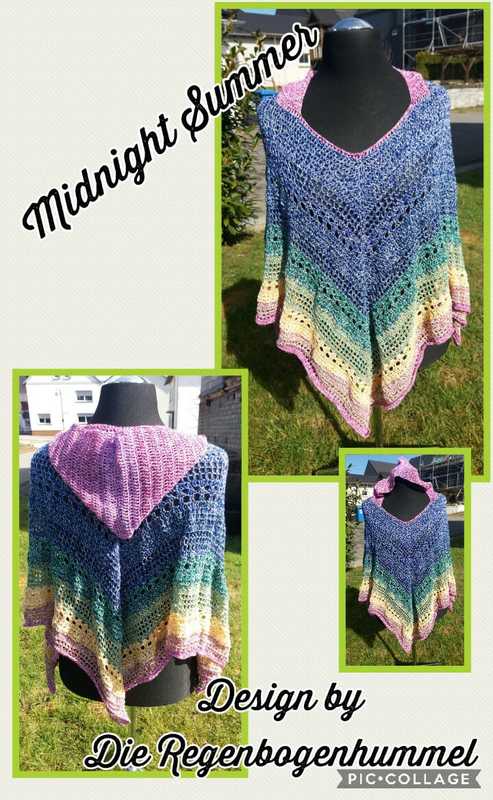 Wir häkeln einen Poncho der viele Facetten bietet. Der Poncho bietet verschiedene Möglichkeiten getragen zu werden. Ob mit Spitze oder lieber geradre Seite vorne, mit Rollkragen,Kapuze oder Wasserfallkragen?. Alles kein Problem mit unserem Poncho Midnight Summer.