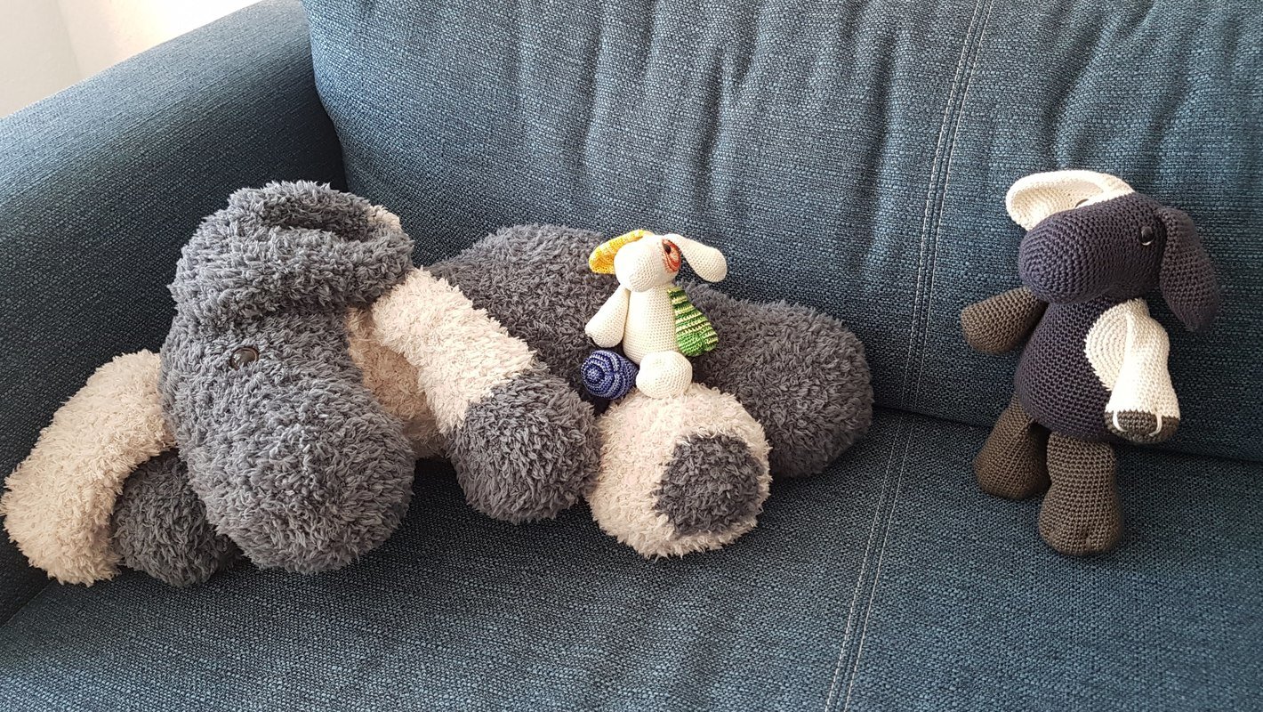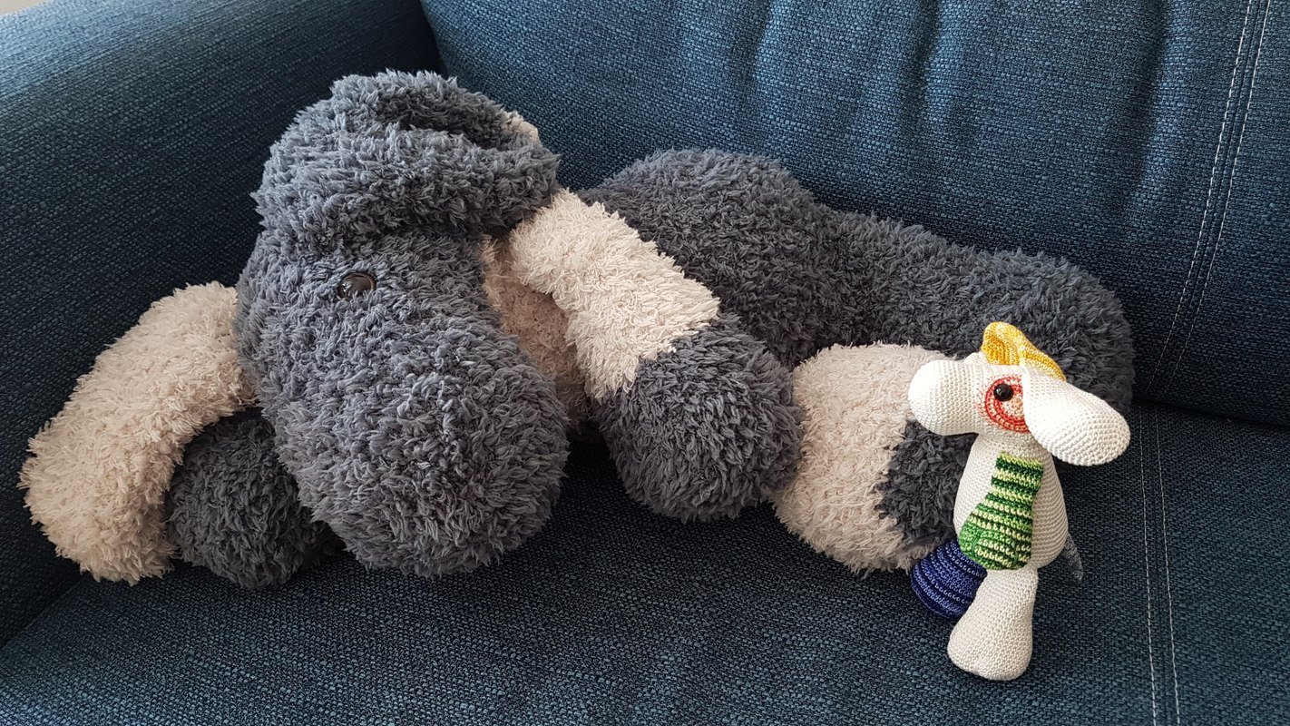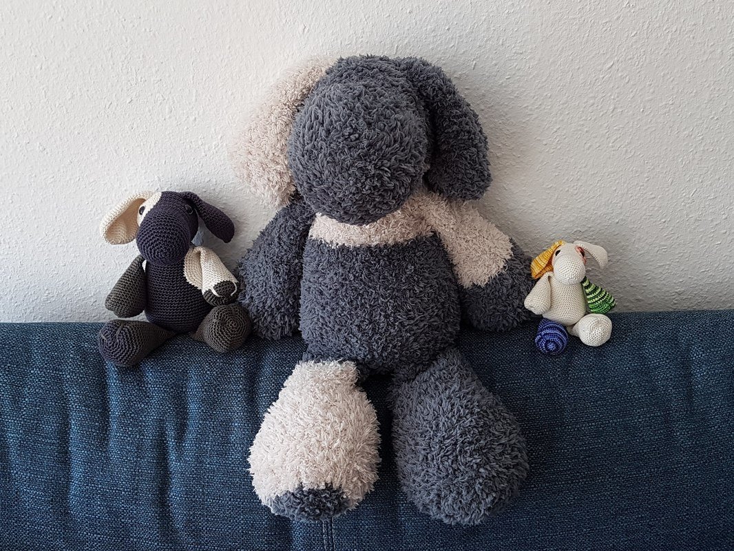 Zudem enthält die Anleitung alle Informationen, wie man einen einfarbigen Hund häkeln kann, oder auch einen mit Flecken.