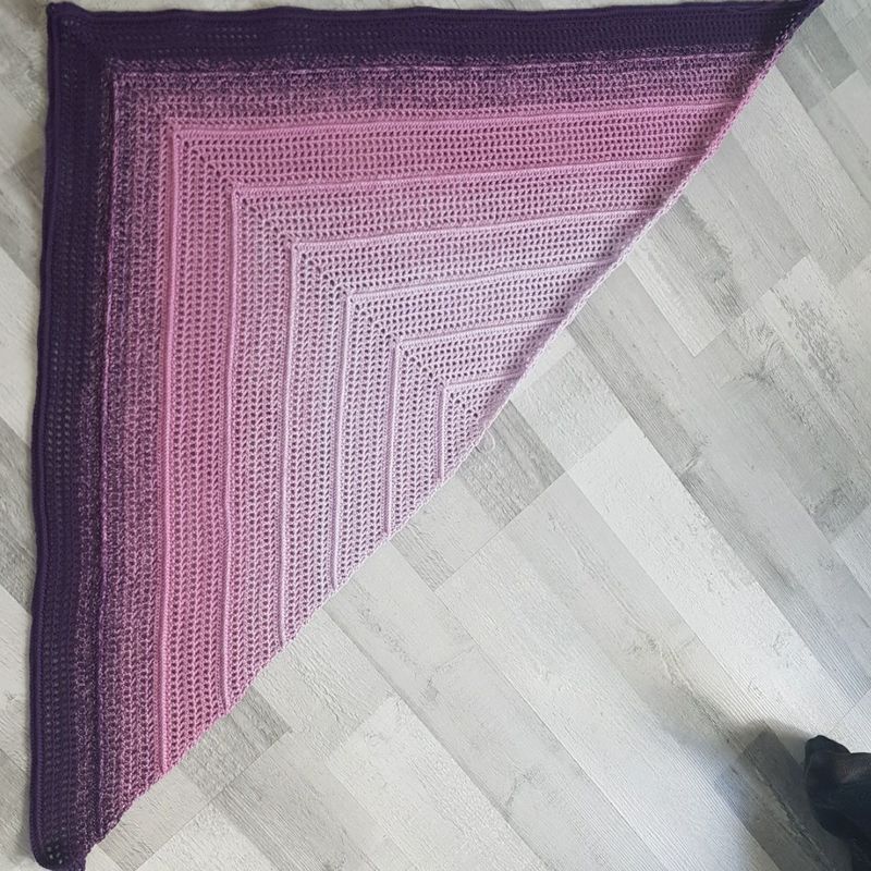 "DJane" ist ein schönes Dreieckstuch, das auch Anfängern gelingt. Es ist ein Mustersatz aus Luftmaschen, Stäbchen und vorderen Reliefstäbchen.