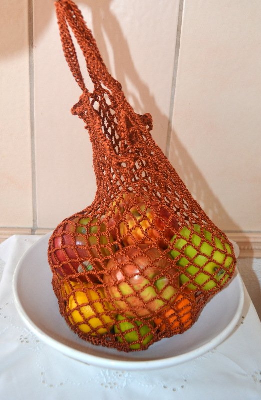 Einfache Netztasche ist zwar keine große Neuigkeit - hat ja schon die Großmutter auch gehabt ! Nach wie vor aber täglich brauchbar bei unseren Einkäufen. Umweltbewusst anstatt Plastik-Tüten, oder Taschen ist ein Einkaufsnetz sehr praktisch, weil man die Größe dem Gebrauch anpassen kann. Es ist schnell gehäkelt und auch als Geschenk super geeignet.