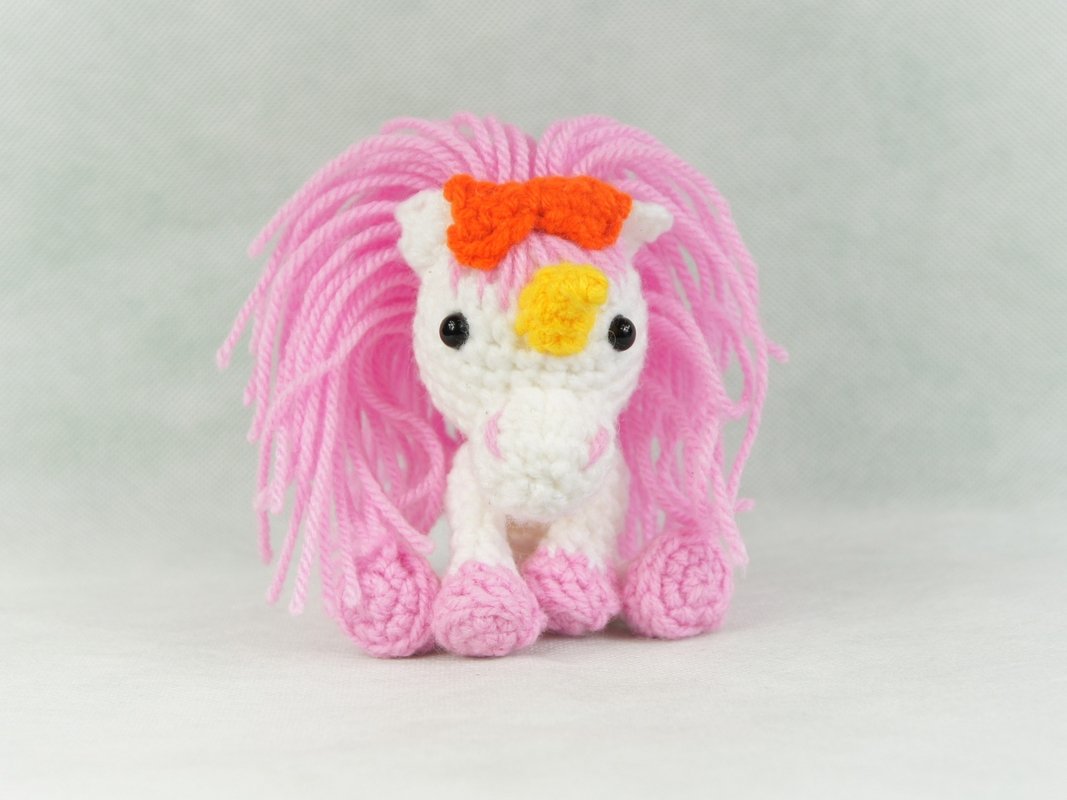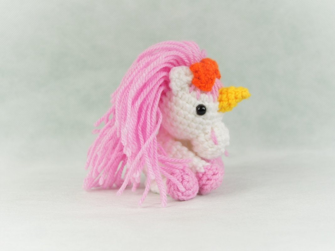 Ein süßes ca. 14cm (ausgestreckt) großes Einhorn für Groß und Klein zum häkeln. Ein schönes Geburtstagsgeschenk aber auch gut zur Einschulung oder einfach nur als Knautschtier oder Glücksbringer für die Tasche.