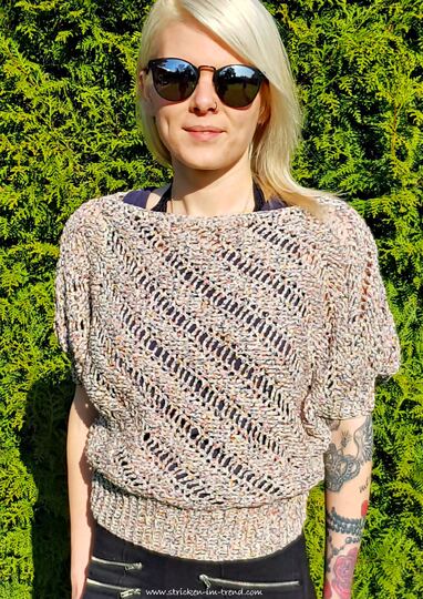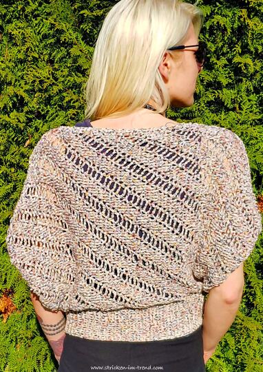 Die Besonderheit bei diesem Oberteil liegt in der Machart - es wird nämlich QUERGEHÄKELT.