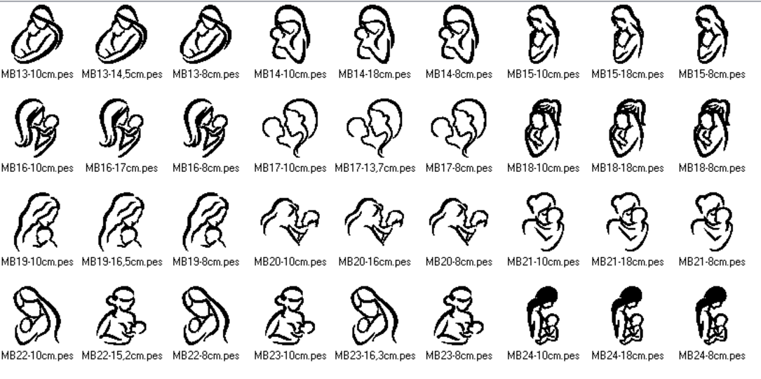 Stickdateiserie mit 12 verschiedenen Motiven in je 3 Größen