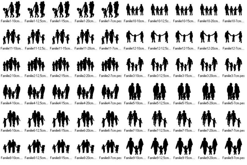 Stickdateiserie mit 12 verschiedenen Motiven in je 5 Größen