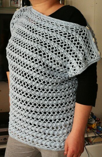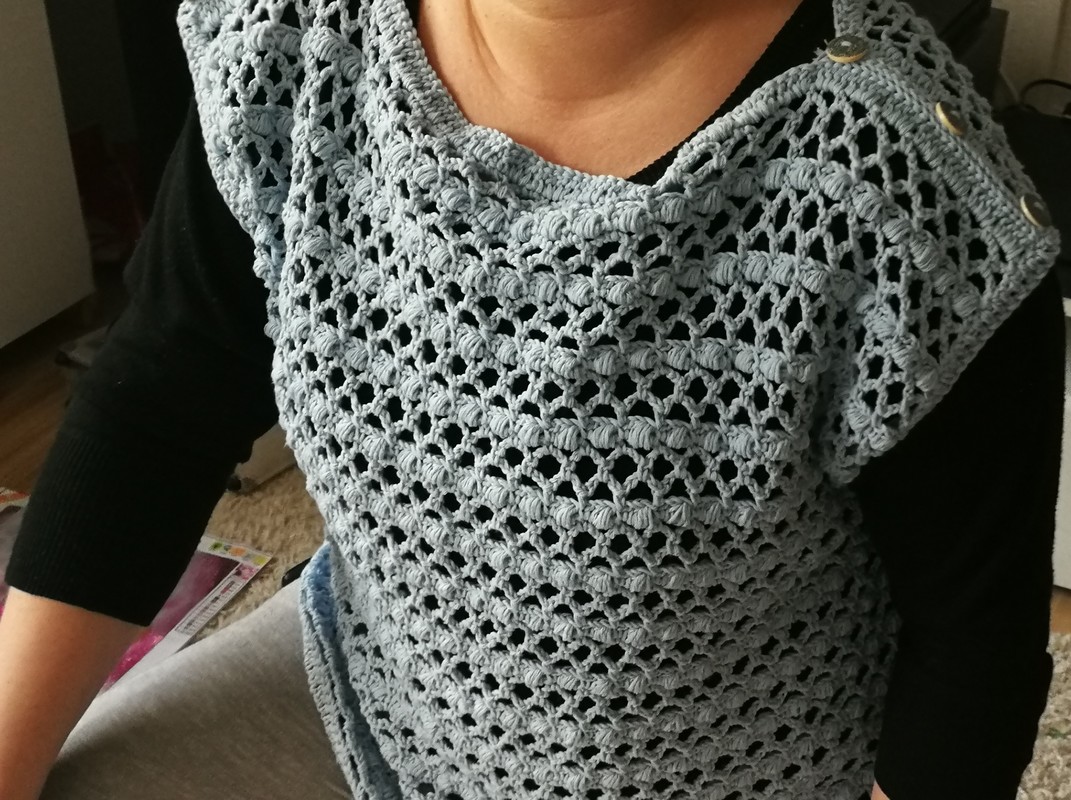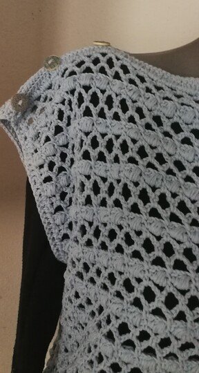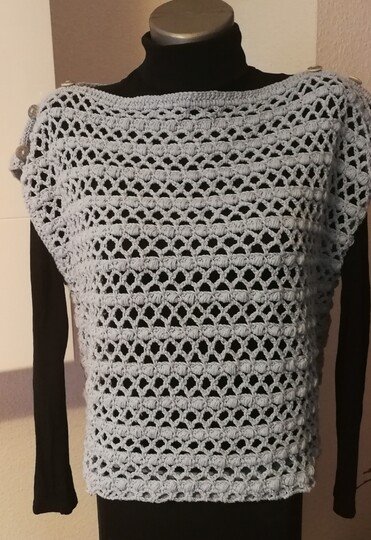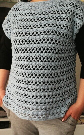 Ein schnell gehäkeltes Shirt für den Frühling/Sommer, keine Zu-oder Abnahmen, es werden Vorder-und Rückenteil gearbeitet und später zusammen genäht. An jede Größe anpassbar. Anleitung ist für 40/42 geschrieben, Verbrauch lag bei ca. 4 Knäul á 100g/220 m ll (900-1000 m ll) und Nadelstärke 3,5. 38/40 ca. 800-900 m ll, 42/44 ca. 1000-1200, Wahl eines anderen Garn/Wolle kann der Verbrauch variieren