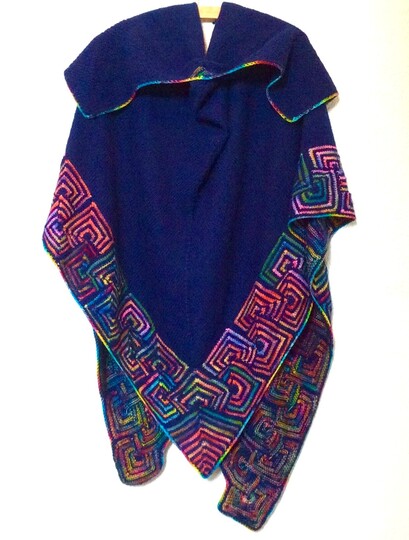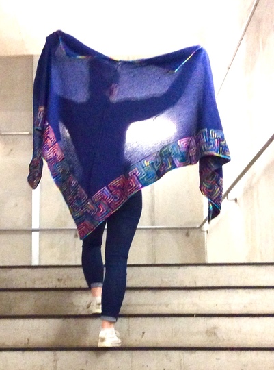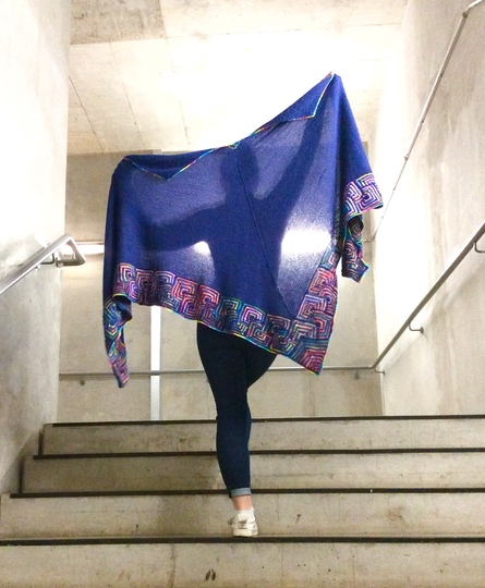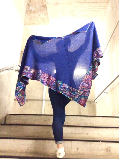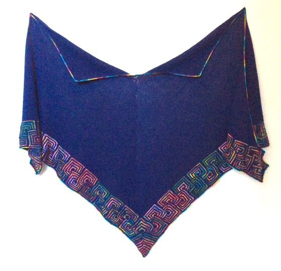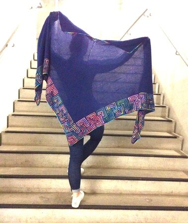 Im Unterschied zum klassischen Dreieck kann dieses großzügige Tuch wärmend bis zum Hals hinauf geschlossen werden. Du kannst die Größe des Tuchs leicht abwandeln. Dazu musst du nur die Bordüre entsprechen verkürzen oder verlängern.