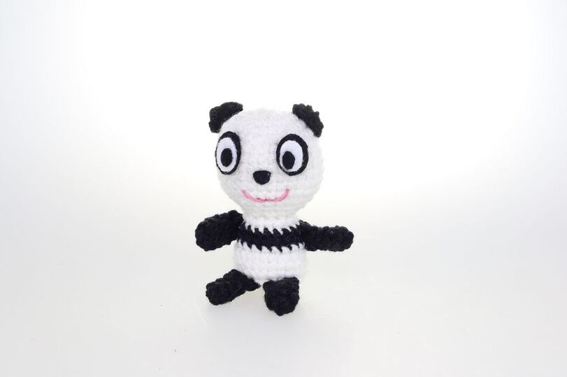 Dieser kleine süße Panda ist schnell gemacht und würde gern bei euch einziehen. Er ist ca. 9cm und einfach zu arbeiten. Man kann ihn gut an einem Schlüsselbund befestigen aber auch zum spielen und dekorieren verwenden.